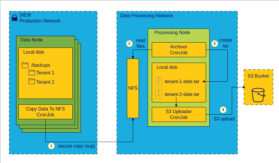 Built an automated solution supporting 1.5 terabytes of SIEM data backup per day