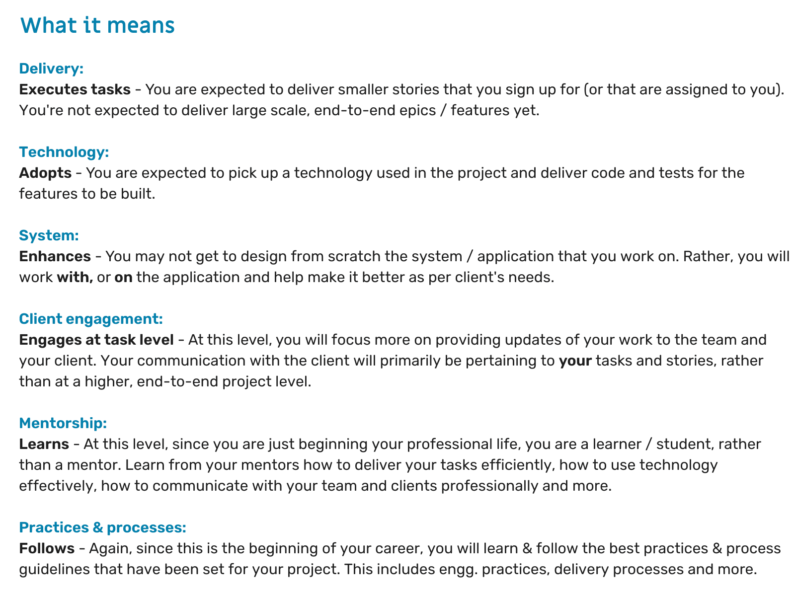 What we expect from you at this level is: