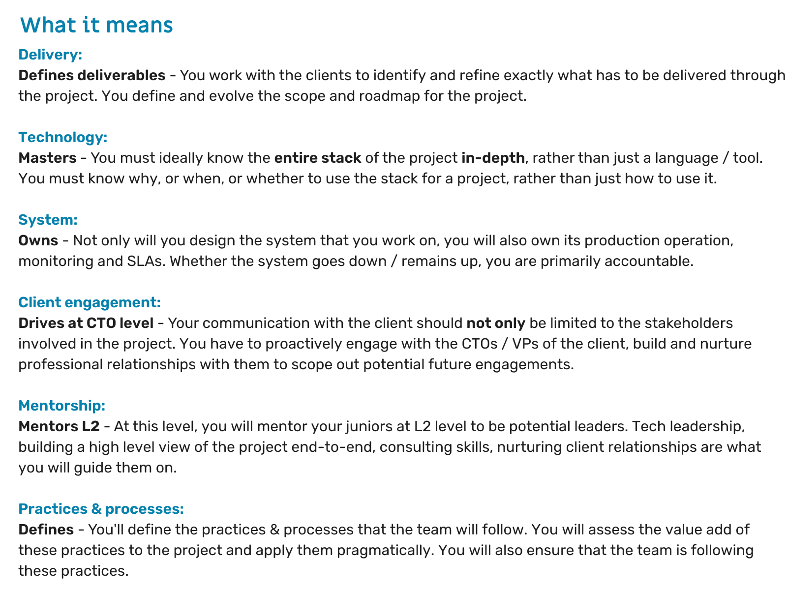- You are informed about the level you are getting promoted to, and the expectations we have from you to do justice to that level.